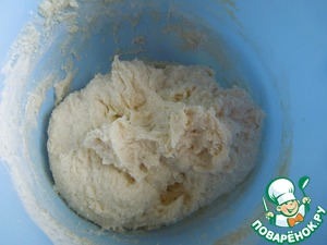 В тесто добавить соду и всыпать муку. Чтобы тесто было без комочков, муку необходимо добавлять постепенно.