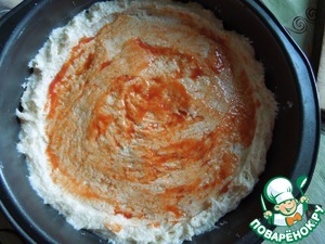 Начинку каждый раз я делаю разную. В данном случае тесто необходимо смазать кетчупом.