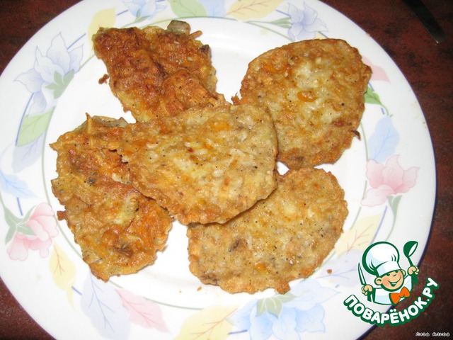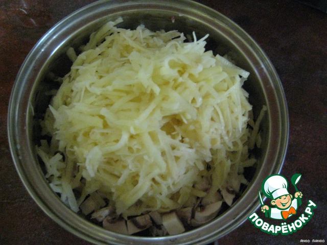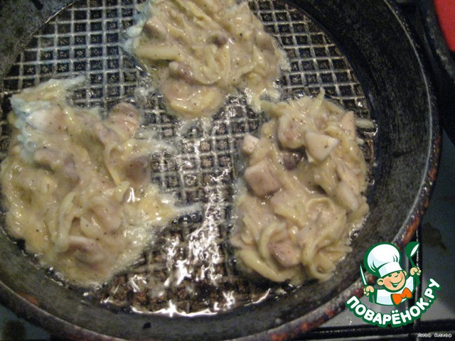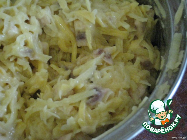 Добавляем в "тесто" яйца, ложку майонеза, соль/перец, муку и тертый на купную терку сыр... Вымешиваем все это дело)...