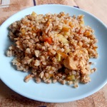 Первым делом отварить крупу до полуготовности. У меня зеленая гречка, тем лучше, блюдо еще полезнее)