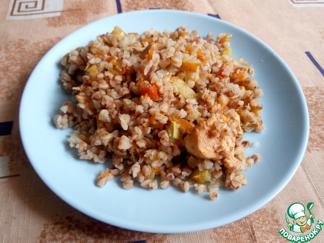Не сложное в приготовлении блюдо! Много полезных овощей, полезная гречка, куриная грудка, вообщем, блюдо вполне подходит для тех, кто следит за фигурой ;) И для тех кто не следит - тоже подойдет!)
