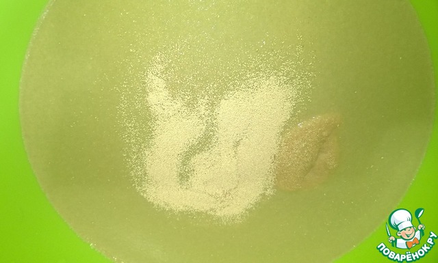 В тёплой воде размешиваем сахар и дрожжи