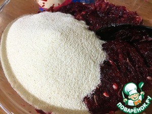 Теперь полстакана манки. Добавляем, перемешиваем.
