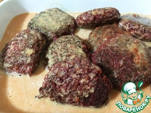 Готовим "соус" для заливки. Для этого смешиваем томатную пасту, острый соус чили, сметану и 1,5 стакана воды. Заливаем котлетки и ставим в микроволновку на средний огонь минут на 10. Можно потушить в духовке.