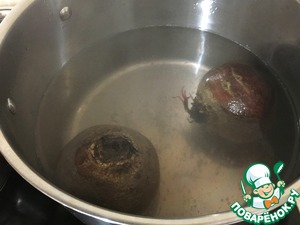 Свеклу нужно хорошо вымыть и, не обрезая хвостики, опустить в кипящую воду. Не солить!