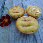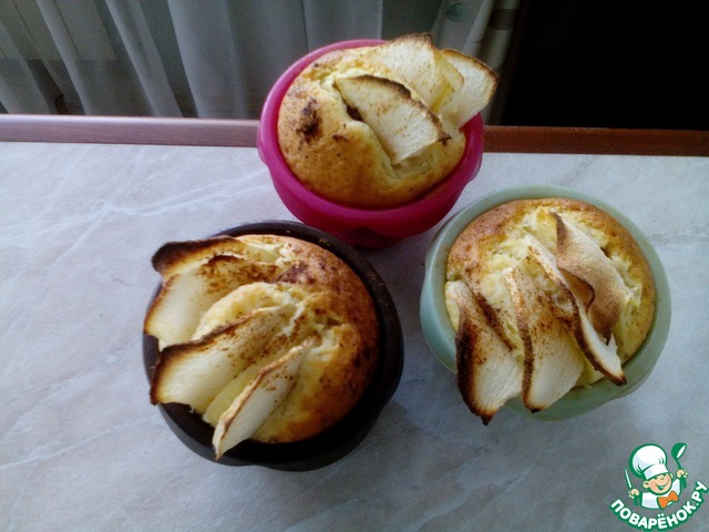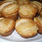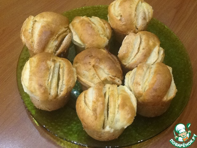 Заполнить формы для маффинов на 2/3, сверху выложить кусочки яблок, слегка вдавливая их в тесто.