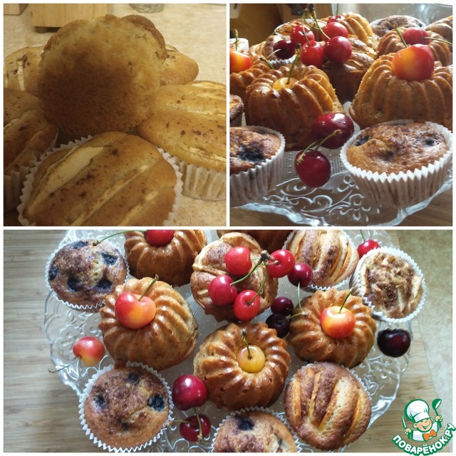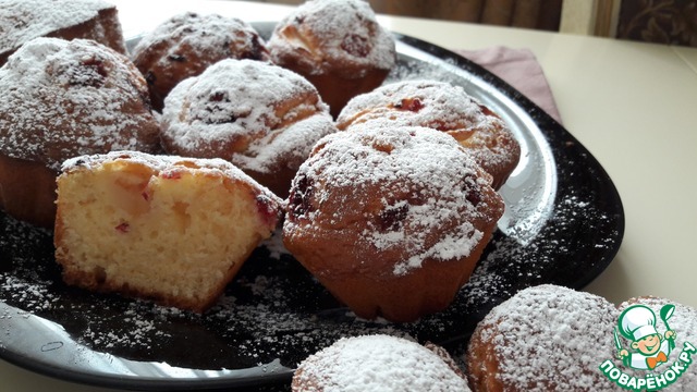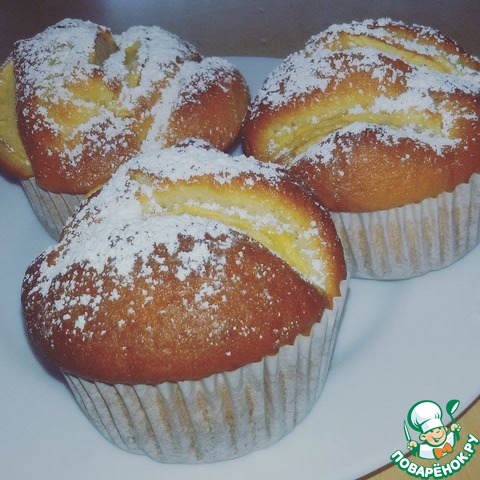 Готовые маффины остудить на решетке, посыпать сахарной пудрой.