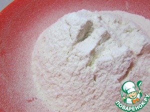 На стол насыпать муку и прокатать по ней рулет, слегка его вытягивая, придавая форму батона.