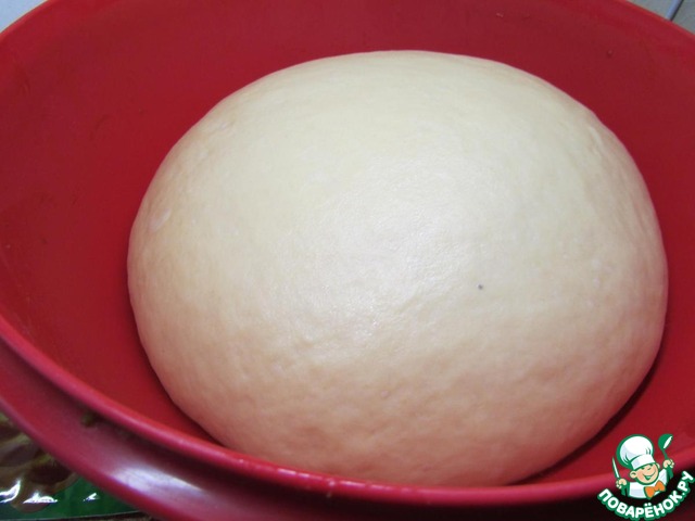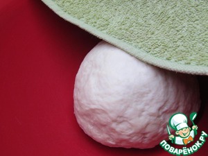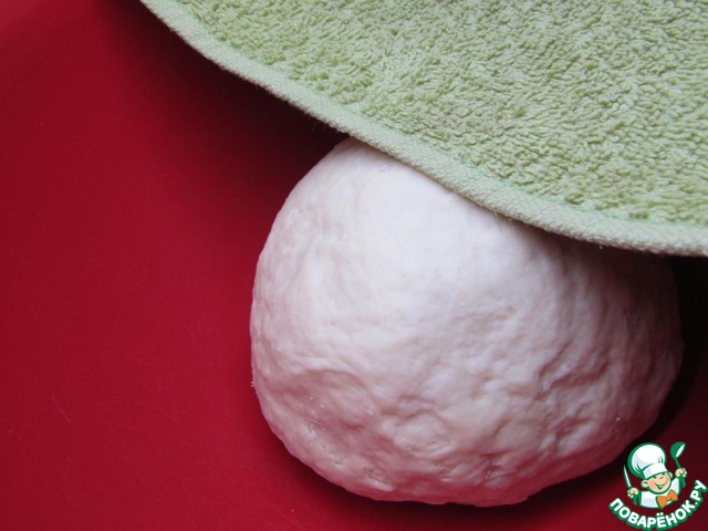 Должно получиться мягкое, гладкое тесто. Накрыть полотенцем и убрать в тёплое место на 1-1,5 часа. Тесто увеличится в 2 раза.