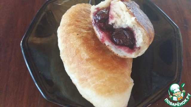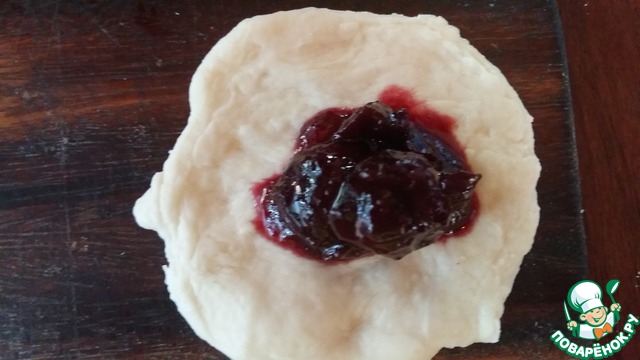 А это второй вариант начинки - вишневый джем. Сформировать небольшие пирожки и поджарить их в предварительно разогретом масле, на среднем огне.