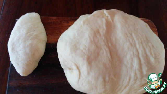 Благодаря использованию сыворотки у меня получилось совершенно необыкновенное тесто, которое не липнет к рукам, не требует подпыла, растягивается очень тонко и при этом не рвется.
