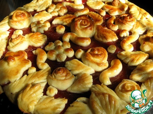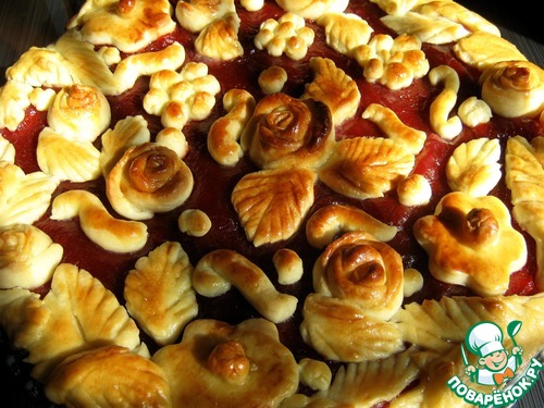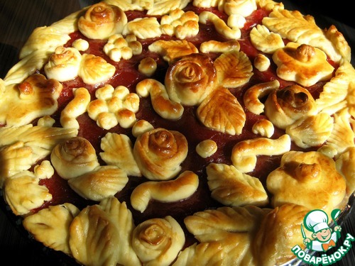 Обожаю работать с хрущевским тестом, компоненты самые простые и доступные, тесто податливое, идеально подходит для фигурной выпечки. Украшение для пирога леплю по наитию, всё очень легко и просто. Вкусный ароматный, нежный, сладкий пирог для домашнего чаепития готов, угощайтесь!