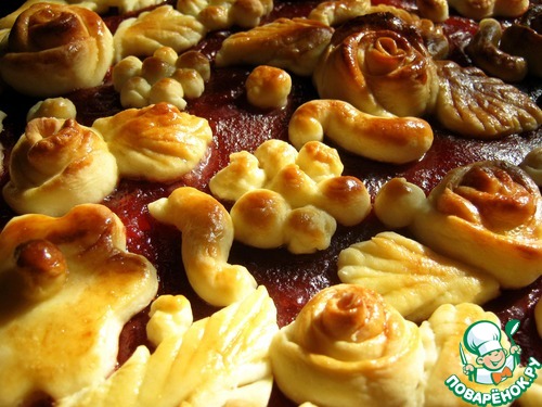 [+5]Теста хватит на большой пирог, я первый раз делала, поэтому побоялась брать большую форму и тесто у меня осталось. Из него формочкой сделали печенюхи и обмакнули их в сахаре. Печенюхи толком не успели допечься как их схрумали (пирог я обороняла чтоб сфотографировать) ).