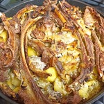 Посыпать рубленным чесноком, сбрызнуть растительным маслом. Плотно накрыть фольгой. Запекать час при 180 градусах. Снять фольгу и дать зарумяниться.