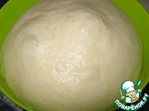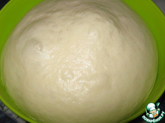 Миску смазать растительным маслом и положить тесто, накрыть плотно убрать в тёплое место на час.