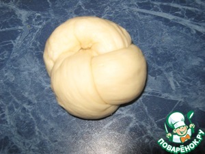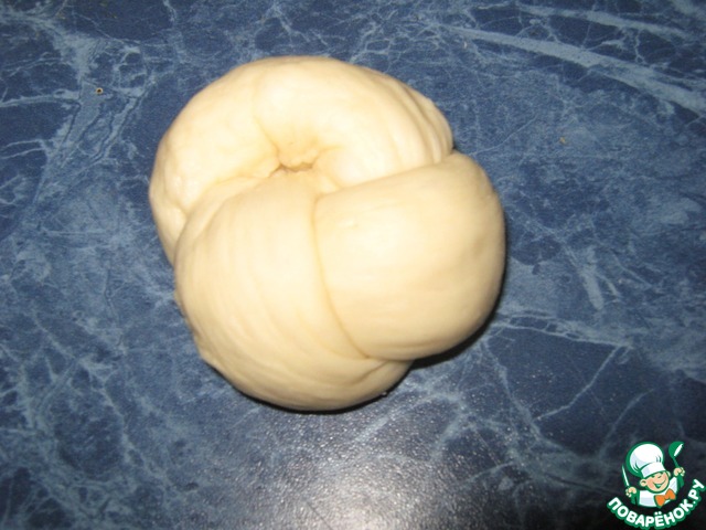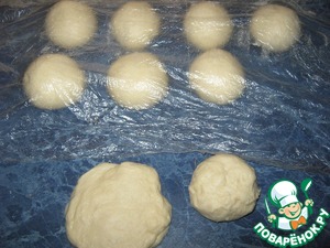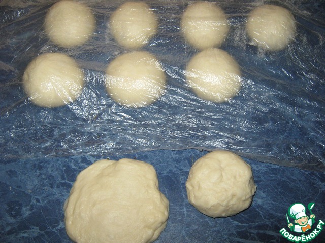 Поделить на части и подкатать в шар. Я накрываю тесто пакетом, чтоб оно не заветрилось.