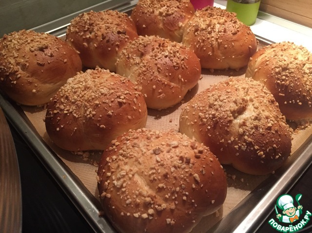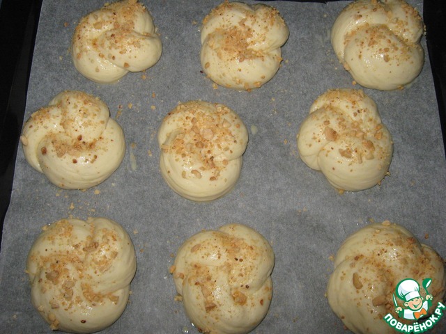 Вместо арахиса посыпаю просто сахаром, так как арахис в выпечке не очень любим (тут уж на вкус и цвет...