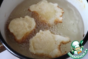 Достаточное количество растительного масла (приблизительно 350-400 мл) разогреть на среднем огне до 180-190 градусов. С помощью 2 чайных ложек выкладывать тесто во фритюр (одной ложкой набираем тесто, а с помощью другой или пальца снимаем в масло).