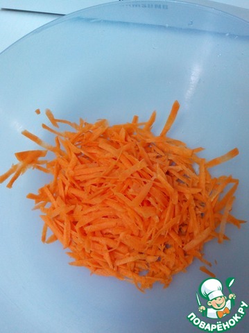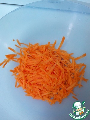 • Морковь почистить, натереть на крупной терке, сложить в салатник