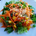 Этот салат можно приготовить и без листьев салата, но без кунжутных семечек никак. Именно они придают этому салату особый вкус.