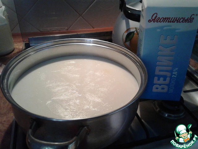 - Молоко (лучше домашнее; чем жирнее, тем больше сыра) — 1 л
