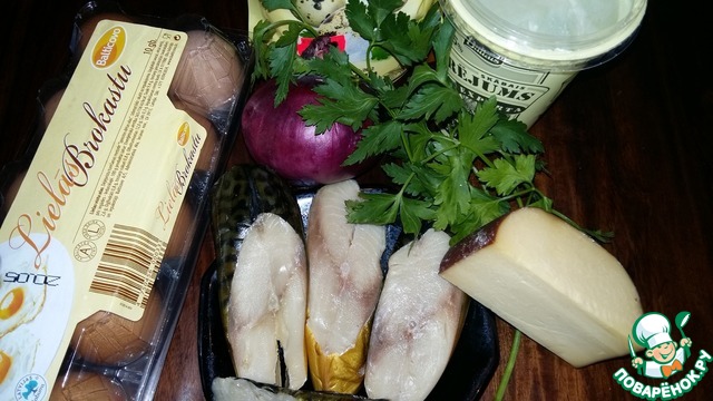 Ингредиенты для «Салат со скумбрией холодного копчения»: