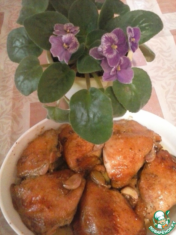 Вы любите курицу? Знаю ответ! Хочу предложить вам прекрасный рецепт. Наполним, друзья, ароматом свой дом! Давайте ее запечем с чесноком! Маринад, ну, просто чудо! Нежно, вкусно, обещаю! Приготовить это блюдо на обед вас приглашаю! И на ужин тоже можно! Будет все совсем несложно! Результат хорош собой! Вам понравится с семьей!