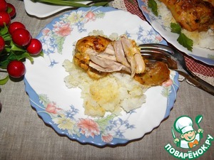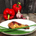 [+5]Курица получилась очень вкусная и ароматная! Сочное мясо с аппетитной корочкой. Только чеснок дольками не добавляла.