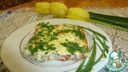 Рецепт «Рисовая запеканка с зелёным луком»: