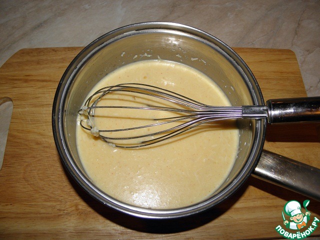 Все хорошо перемешать, регулировать консистенцию, кляр не должен быть слишком жидким.