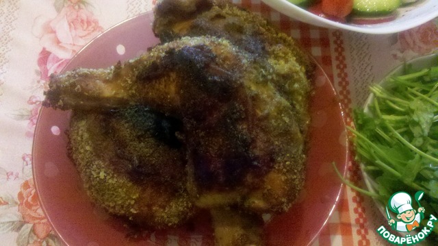 Тему курочки продолжим, наш рецепт совсем не сложный! Очень нежной будет птица! Приглашаю угоститься! Сырная, хрустящая, сочная такая! Просто настоящая наша золотая! На здоровье всем друзья! Пусть всегда нам вкусно будет! И довольная семья, нас еще сильней полюбит!
