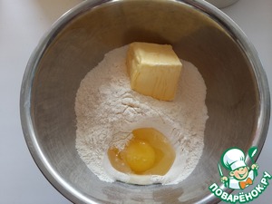 • Для песочной основы - смешайте муку, соль, сахар, добавьте масло и яйцо.