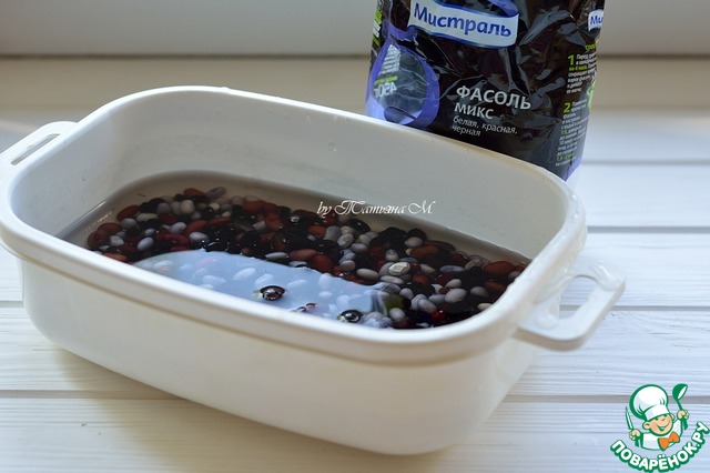 Фасоль замочить на 4 часа в холодной воде, промыть;