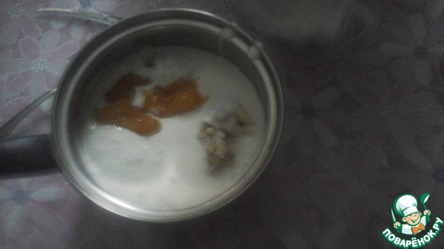 Положите все необходимые ингредиенты в чашу блендера. Простите у меня обычная кастрюлька потому что у меня погружной блендер.