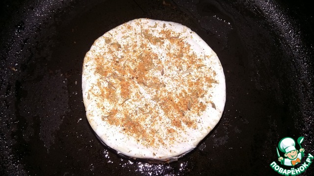 Для аромата посыпала сыр приправами. И быстро его обжарила на среднем огне до размягчения внутри.