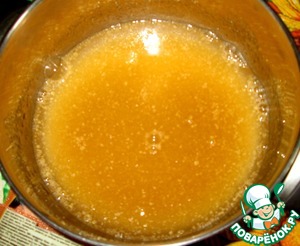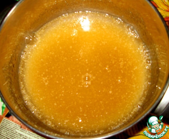 Оставшейся желатин (40гр) замочить в двух стаканах сока.