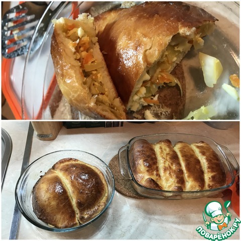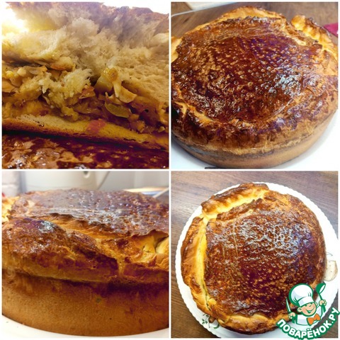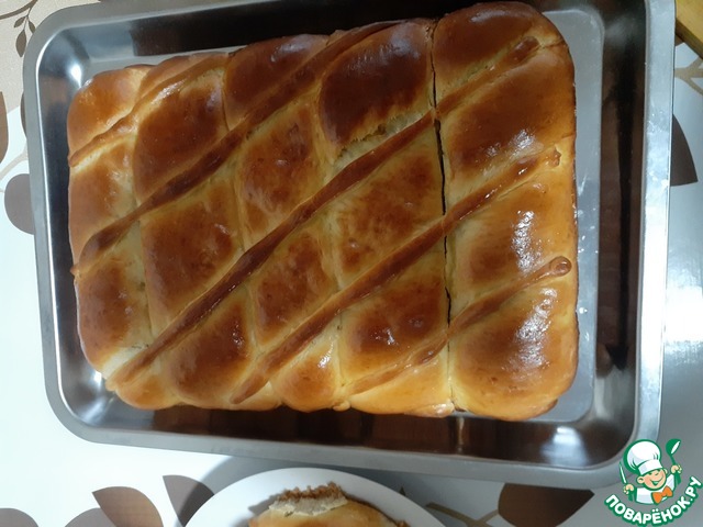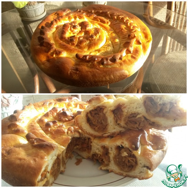 похвал. Делала все по рецепту. Из этого количества получился один пирог большой и один по меньше. Формировала так, как у автора. На порции резать было очень удобно. Хоть и повод у меня не очень веселый был для приготовления этого пирога, но пирог понравился исключительно всем. Спасибо огромное .