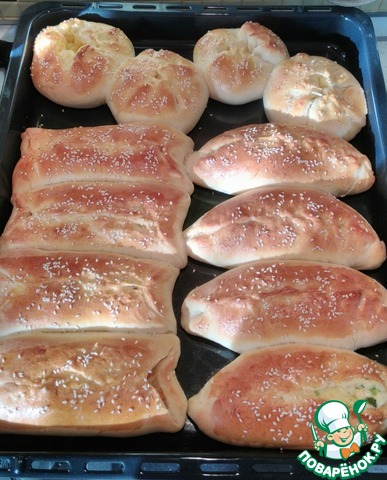 Выложить много начинки и свернуть в виде рулета, концы защипнуть и выложить в форму, и так все шарики.