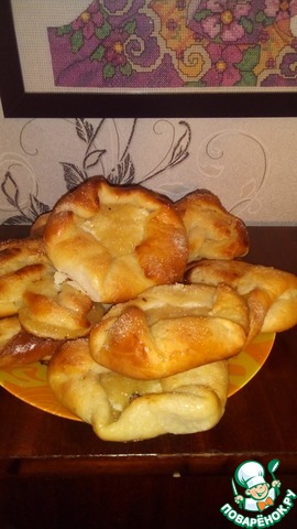 Затем его разделить примерно на кусочки, подкатывая их в шарики, дать постоять 5-10 минут, и начать формировать пирог