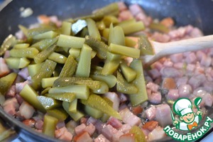 Добавить к ветчине. Перемешать. Жарим 1 минутку. -