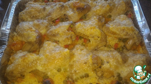 Накрываем форму фольгой (или крышкой) и ставим в духовку на 25-35 минут при 200˚C