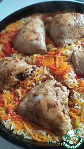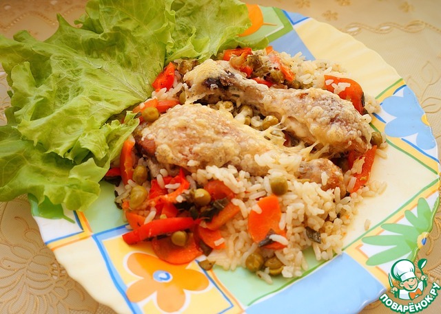 Мы очень любим рис с овощами. Но сегодня к традиционному своему рецепту я добавила куриные ножки. Получилось праздничное яркое блюдо. О вкусе я ничего не скажу. Скажу только, что это стоит попробовать.