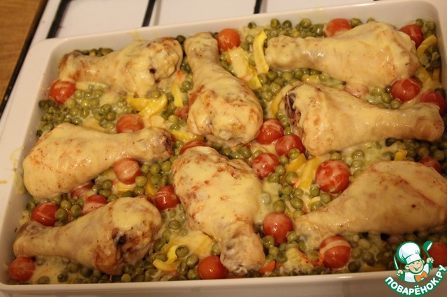 За 5 минут до готовности снимаем фольгу и выкладываем на куриные ножки тертый сыр. Оставляем в духовке еще на несколько минут.
