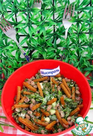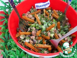 Почему "Майское впечатление"? Потому, что это первое, что приходит на ум при упоминании с просьбой приготовить моих домашних, этот салатик. Впервые мы его попробовали неделю назад, но а приходилось его готовить уже 3 раза. Скажу вам честно расходится он за пол часа, и не важно обед это, или ужин!)))Готовили его наши друзья на природе, просто взяв с собой отваренную предварительно фасоль. Все наша компания осталась под впечатлением. Уж очень он заманчиво вкусный)))