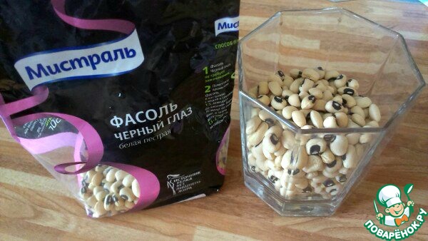 Я взяла фасоль от "Мистраль" черный глаз! Сварить по инструкции. По окончанию варки воду слить (если останется), дать остыть.
