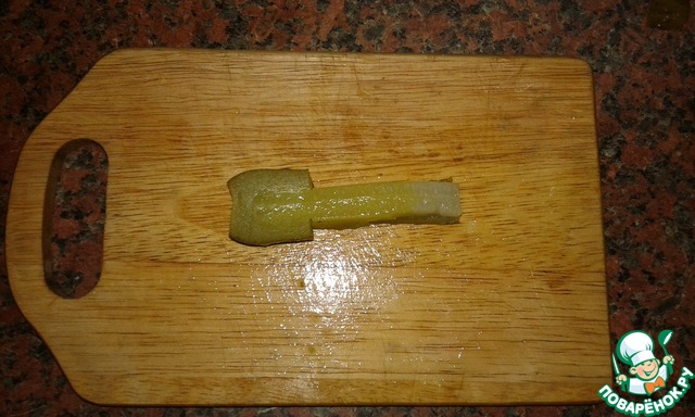 • 8. Вырезать из каждой половинки гриф гитары (как на фотографии).