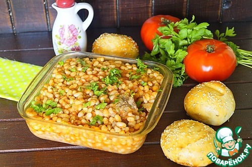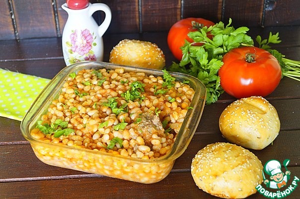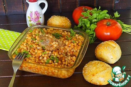 Рецепт «Фасоль, запеченная с томатом и котлетами»: