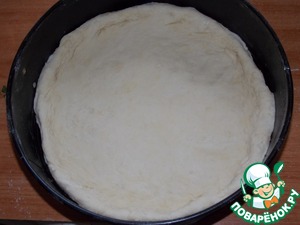 Тесто распределить по форме, сделать небольшие бортики. Немного теста оставить для верха.