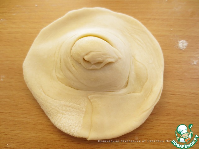 Тесто собираем в шар, накрываем полотенцем и оставляем на 15 минут -