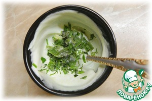 • рубленную зелень, посолить и поперчить по вкусу. Перемешать.